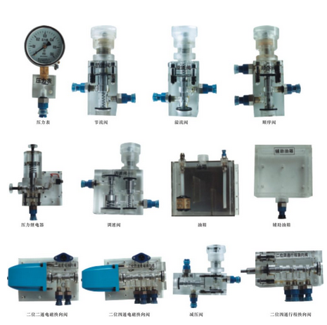 如果需要了解液压元件的结构,可以使用我们的液压元件拆装实训台,该试验台配置各种液压泵、液压控制阀和液压缸等液压元件及相关工具,可以进行对液压元器件的拆装。