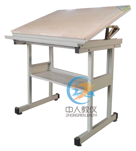多功能实用绘图桌固定绘图桌支架采用钢架结构,桌面板采用东北优质加厚椴木材料的1号绘图板,并可调节倾角0°-60°,桌面下部有储物隔板,可以放置书包、文具和图纸等物品,牢固耐用,适用于机械制图绘图和绘画专业,在院校内实用和经济的一款多功能和升降绘图绘画桌,有较强的多种行业和课程的兼容性和普及性。